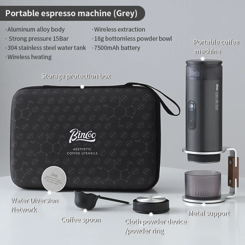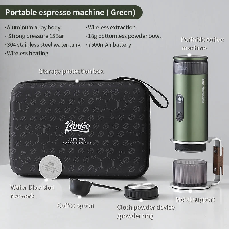 Experience the perfect brew anywhere with the Bincoo Camping Portable Coffee Machine. Designed for coffee enthusiasts on the go, this electric wireless device ensures a rich and flavorful extraction every time.